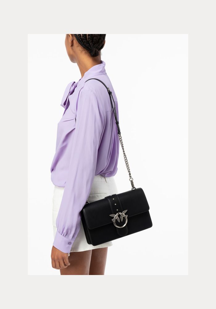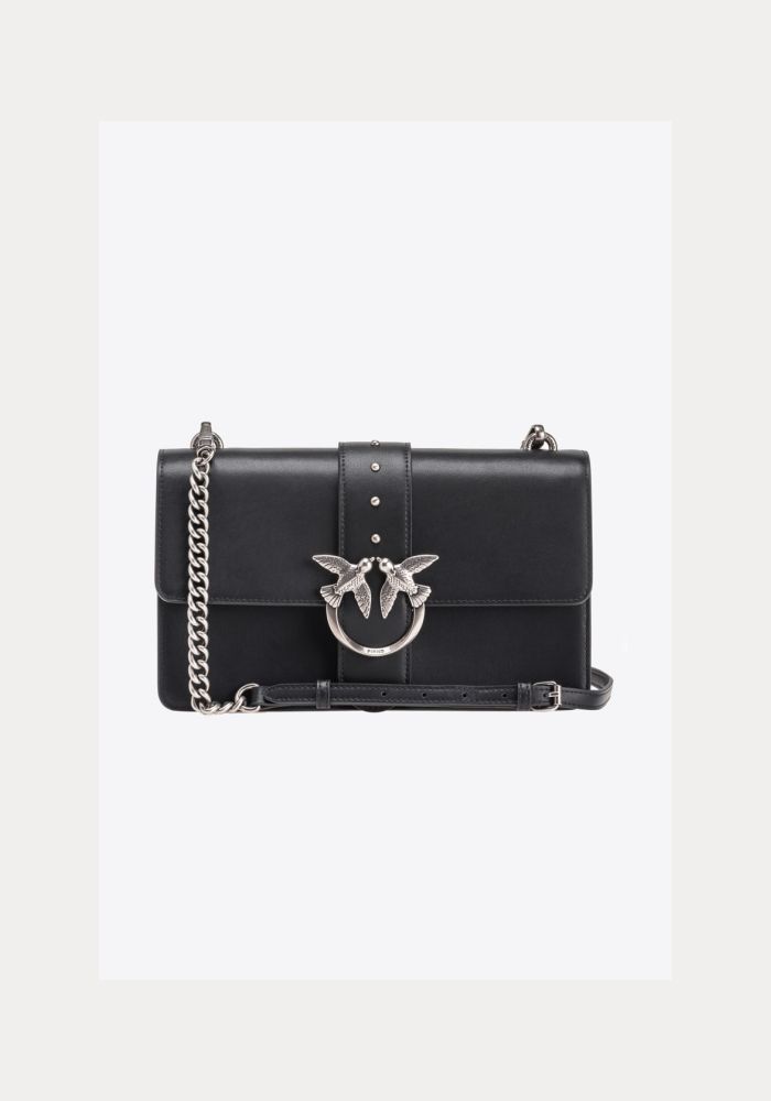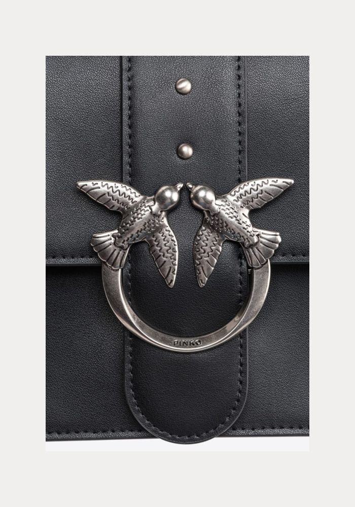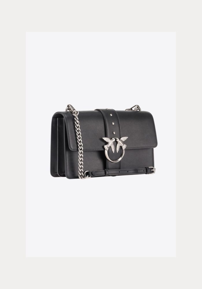 Τσάντα Classic Love BagOne από μαλακό δέρμα με πολύ απαλή υφή. Το κλείσιμο με δερμάτινο γλωσσάκι με τρουκς ολοκληρώνεται με την εμβληματική μεταλλική αγκράφα Love Birds Diamond Cut. Το εσωτερικό είναι φοδραρισμένο με ύφασμα από μικροΐνες με σουέτ υφή και διαθέτει διαχωριστικό που κλείνει με φερμουάρ και δερμάτινη τσέπη στο τοίχωμα. Το αφαιρούμενο λουρί συνδυάζει την κλασική στρογγυλή αλυσίδα με το πρακτικό, ρυθμιζόμενο, δερμάτινο λουράκι ώμου. Ύψος: 17 cm Πλάτος: 7 cm Μήκος: 27 cm