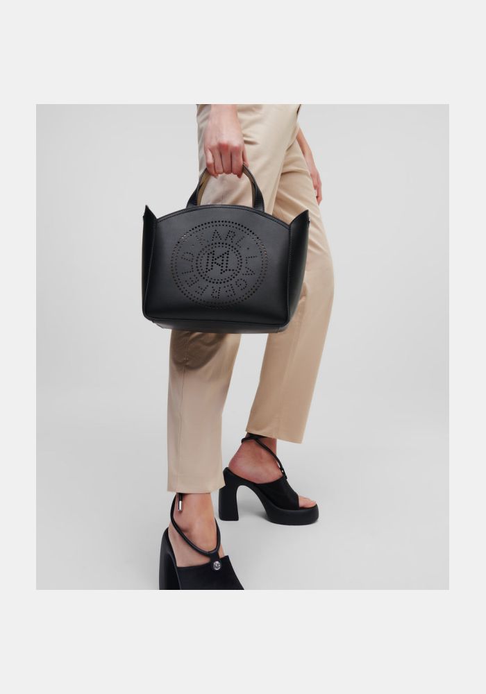 Beautifully made of luxurious leather, this tote K/Circle bag is enchanting with cashed artwork and the selected magnetic lock. The complexity meets the functionality with two handles and a sold-out handlet.