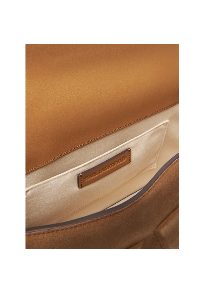 This soft leather suede bag has an analogous shape and a distinctive logo of KARL LAGERFELD, combining elegance with the transitional style. Magnetic lock with an interior: :: adjustable and adjustable leather shoulder pads.