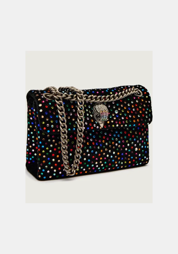 Μικρή τσάντα Kurt Geiger London. Κλειδώνει. Κατασκευασμένη από ύφασμα και στρας. - Κλείνει με μαγνήτη. - Μοντέλο με επένδυση. - Εξοπλισμένο με εσωτερική τσέπη. - Τσάντα χειρός και τσάντα ώμου. - Δεν είναι συμβατή με μέγεθος A4. - Η υφασμάτινη τσάντα που περιλαμβάνεται προστατεύει το προϊόν από τη σκόνη. - Ελάχιστο μήκος λουριού: 70 cm. - Μέγιστο μήκος λουριού: 120 cm. - Βάθος: 6,5 cm. - Ύψος: 13,5 cm. - Πλάτος: 20 cm.